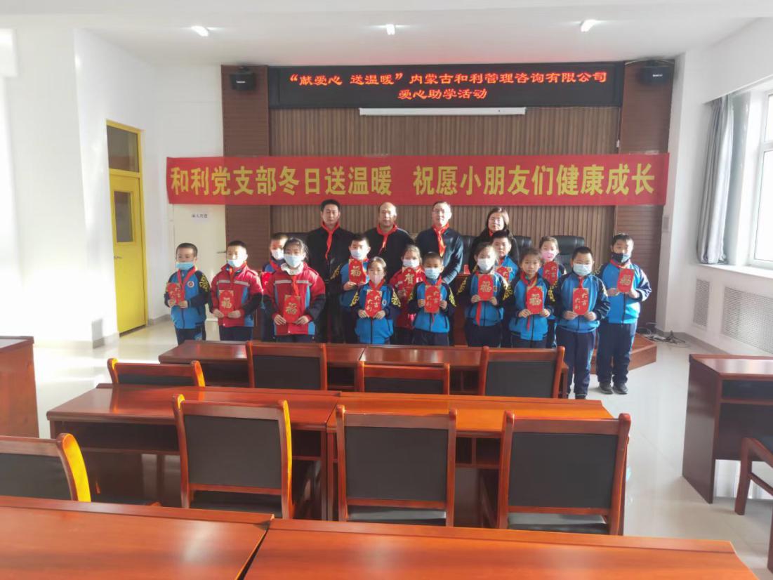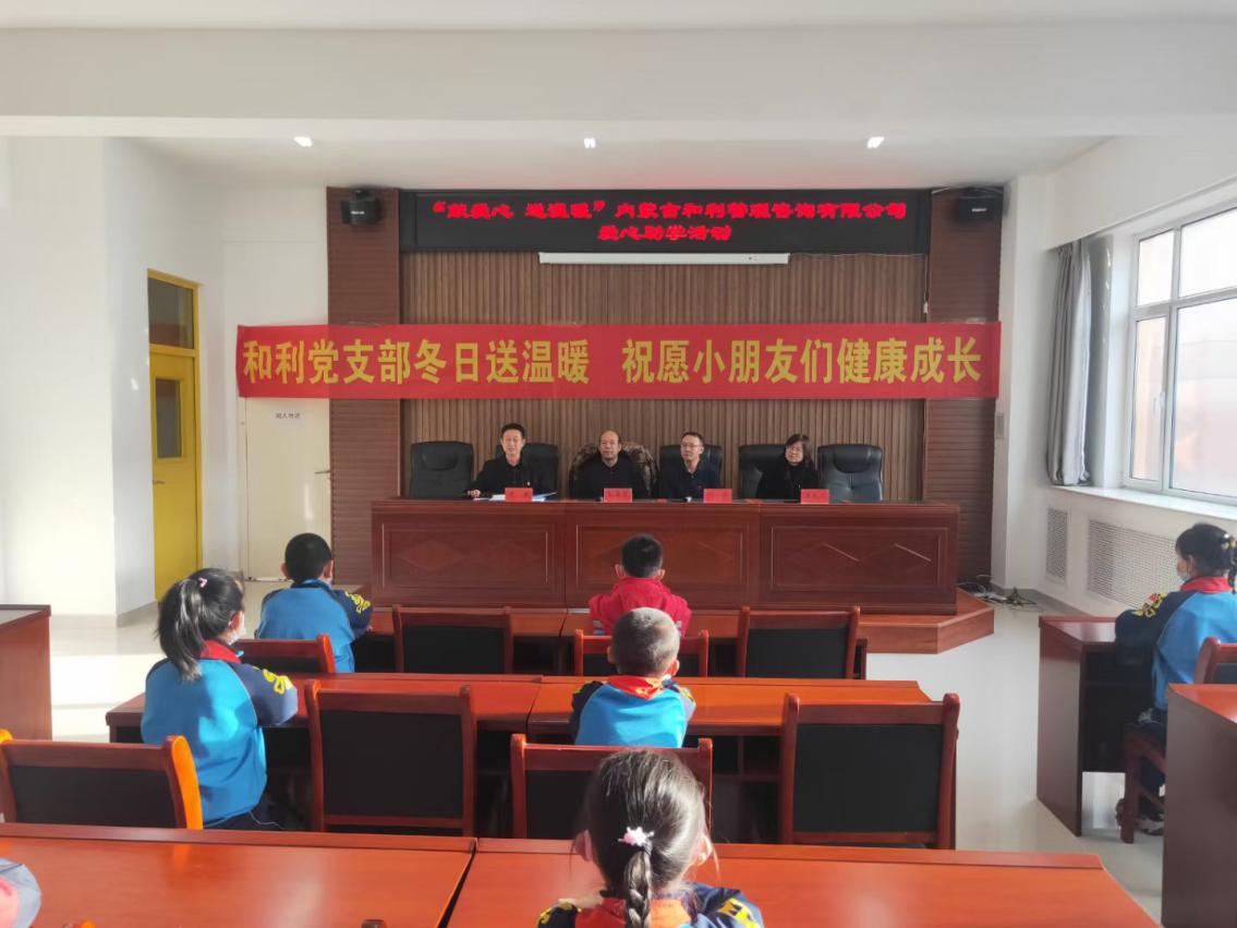 12月23日上午,金川工業(yè)園區(qū)黨群工作部部長(zhǎng)郭麗君、金川工業(yè)園區(qū)黨群工作部副部長(zhǎng)姜芙蓉、愛(ài)心企業(yè)內(nèi)蒙古和利管理咨詢(xún)集團(tuán)有限公司黨支部書(shū)記張偉一行前往金川學(xué)校開(kāi)展慰問(wèn)貧困兒童活動(dòng)。