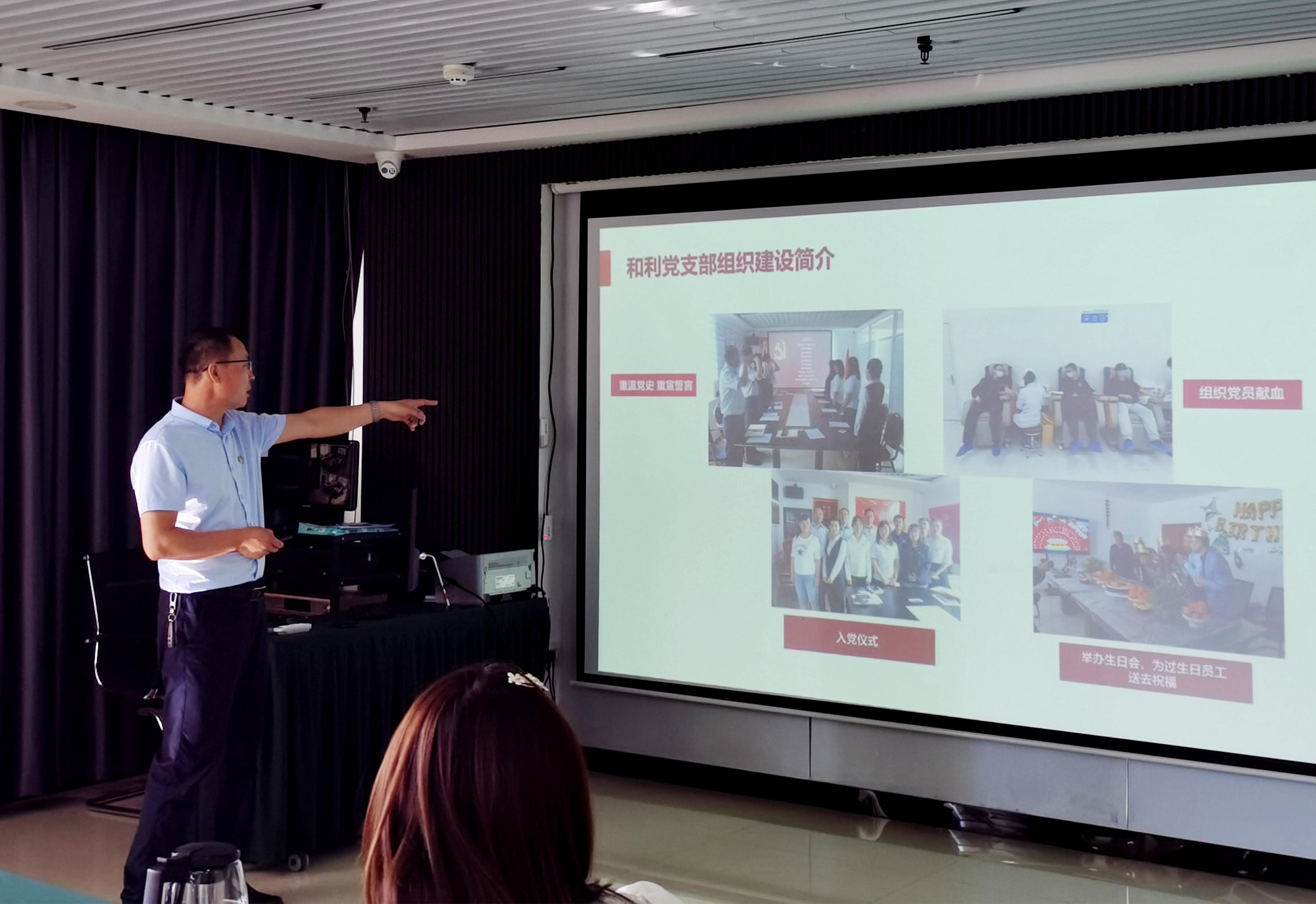 自治區(qū)代建中心招投標(biāo)合同處正高級工程師張鑫首先對和利黨支部組織建設(shè)情況及黨建活動情況給予了肯定和鼓勵,希望和利黨支部繼續(xù)發(fā)揮專業(yè)技術(shù)優(yōu)勢和年輕化優(yōu)勢,凝心聚力,增強(qiáng)團(tuán)隊(duì)凝聚力,從而推動和利集團(tuán)的進(jìn)一步發(fā)展。其后對代建中心招投標(biāo)合同處黨支部工作情況進(jìn)行了介紹。