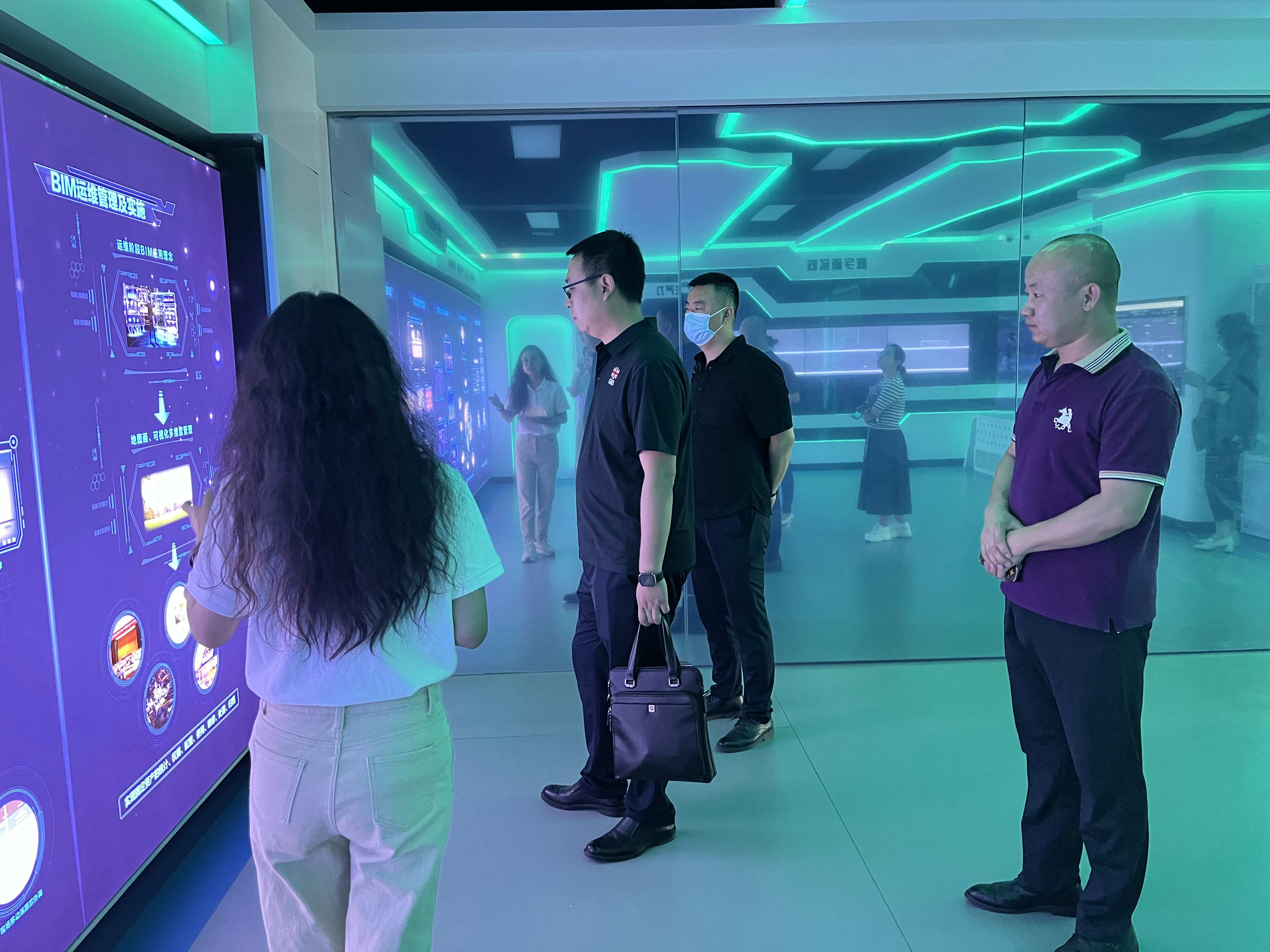 6月9日上午,興業(yè)集團(tuán)董事長屈景琦、總會(huì)計(jì)師王潤玲、信息中心主任莊雅峰、成本管控部部長周琳一行領(lǐng)導(dǎo),蒞臨內(nèi)蒙古和利管理咨詢集團(tuán)有限公司(以下簡稱和利集團(tuán))進(jìn)行企業(yè)信息化建設(shè)交流。首先由和利集團(tuán)人力資源部部長張曉雪帶領(lǐng)各位領(lǐng)導(dǎo),對公司環(huán)境及數(shù)字建筑體驗(yàn)館進(jìn)行介紹與參觀。