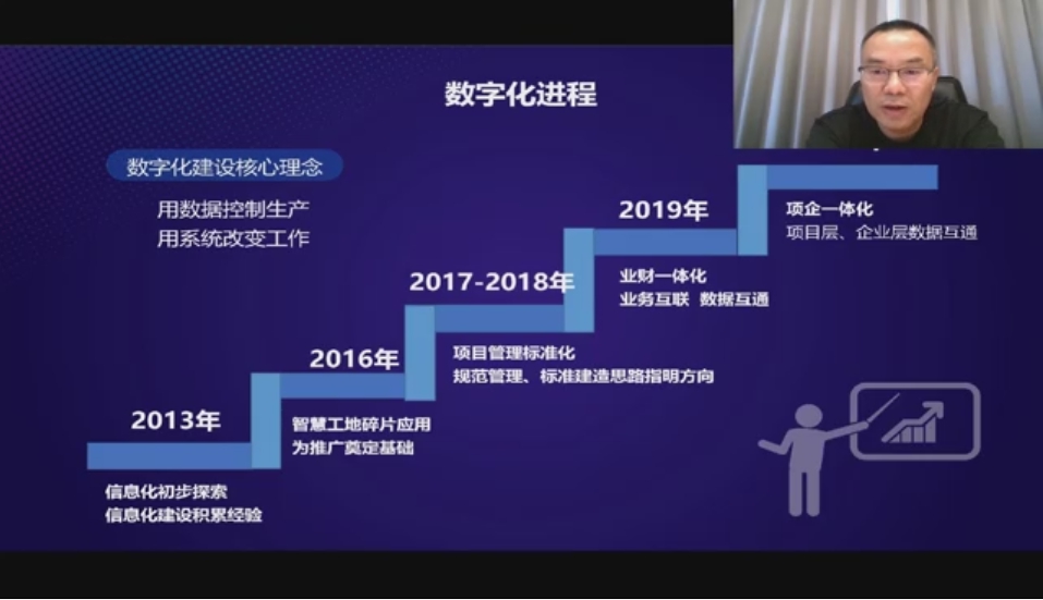 重慶大江建設(shè)工程集團(tuán)總經(jīng)理姚斌在線做主題,為重慶大江企業(yè)的發(fā)展之路及歷程進(jìn)行了分享。介紹了重慶大江企業(yè)從2013年到2022年的數(shù)字化發(fā)展進(jìn)程,分享一體化建設(shè)方“用數(shù)據(jù)控制生產(chǎn),用系統(tǒng)改變工作”的核心理念以及如何與廣聯(lián)達(dá)業(yè)務(wù)系統(tǒng)之間實(shí)現(xiàn)一體化的具體流程的方向指引。