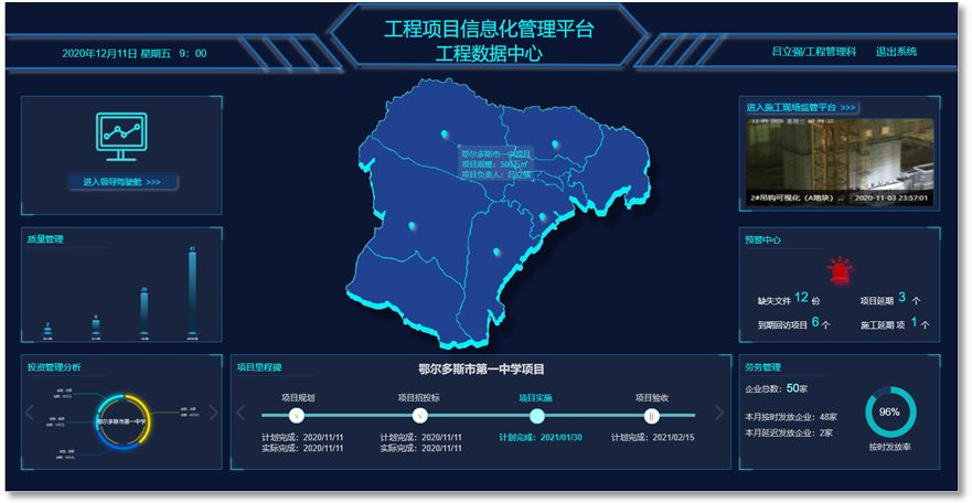 按照不同維度,對不同類型的項目進行各類數(shù)據(jù)統(tǒng)計、分析,形成領(lǐng)導(dǎo)數(shù)據(jù)展示倉。實現(xiàn)項目投資分析、對農(nóng)民工工資發(fā)放監(jiān)管、對項目回訪提醒、施工現(xiàn)場監(jiān)管、文件缺失提醒。